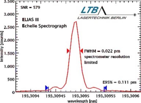 光谱仪校准:Ixion-193-SLM标准款就已经很适合做193nm深紫外频段高分辨率光谱仪校准,下图为校准德国LTB高分辨率中阶梯光栅光谱仪的实测图