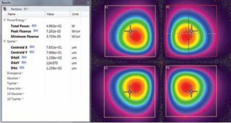 · 激光光斑峰值中心、几何中心位置;激光高斯拟合度;测量光斑指向稳定性等丰富参数只需点选即可分析并显示