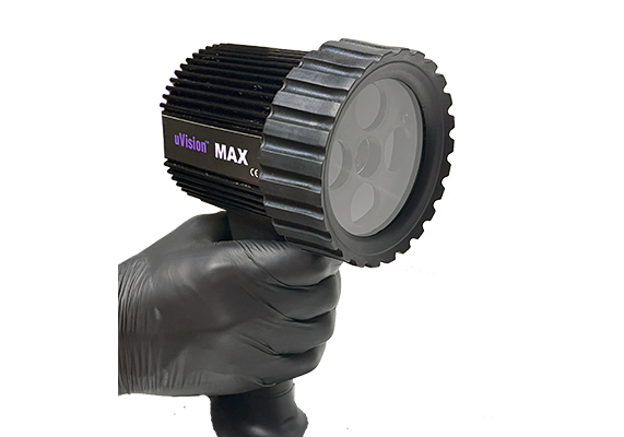 uVision™ MAX 系列代表了 Spectro-UV 在手持式无损检测技术领域的又一次革新。该系列灯具采用创新的 4 透镜配置,在 15 英寸(38 cm)工作距离下可提供优化的广角 UV-A 覆盖范围,覆盖区域直径达 9.5 英寸(24 cm)。MAX 系列基于成熟的 uVision 平台打造,延续了备受专业人士信赖的 IP65 防护等级、无风扇热管理系统以及合规性设计等优异特性。